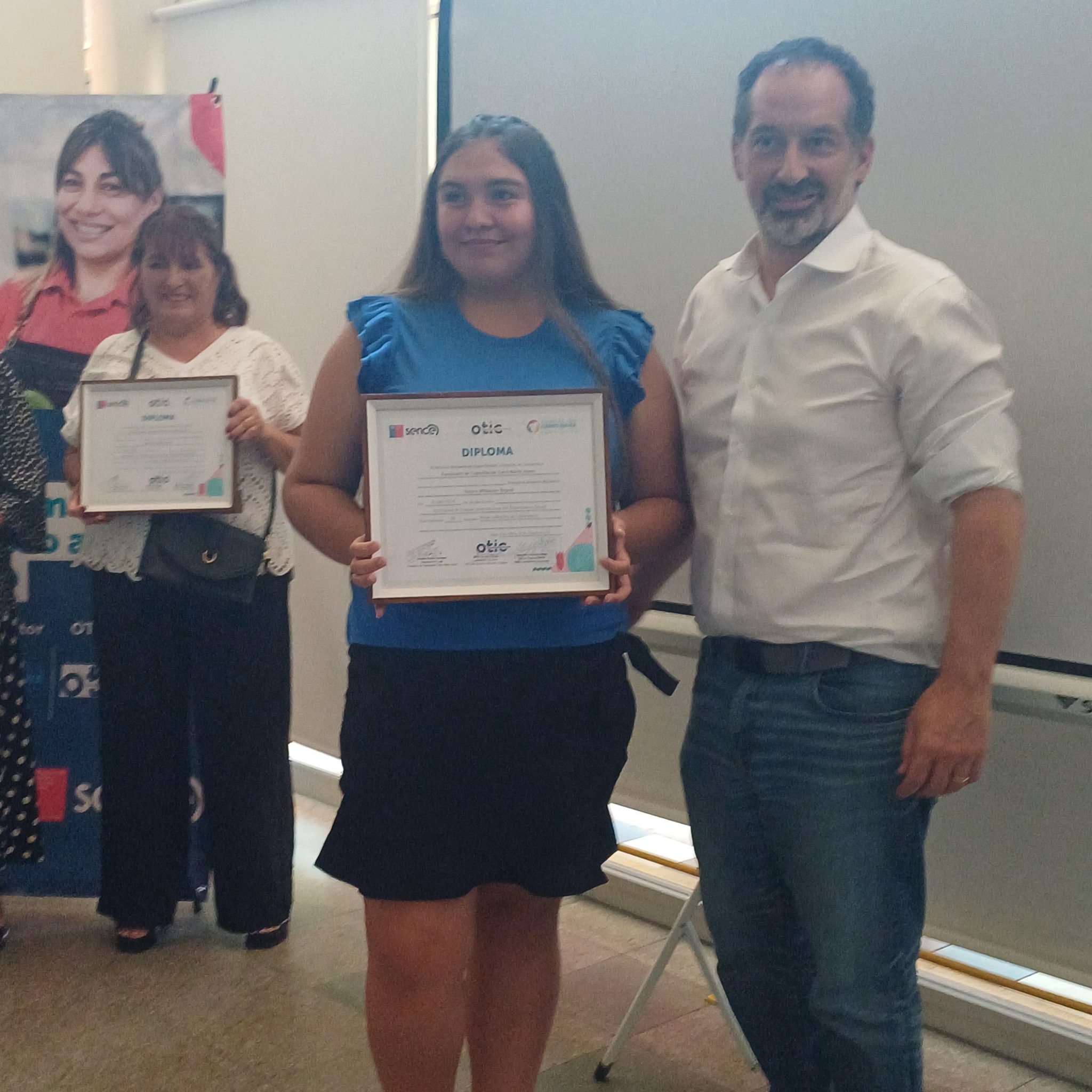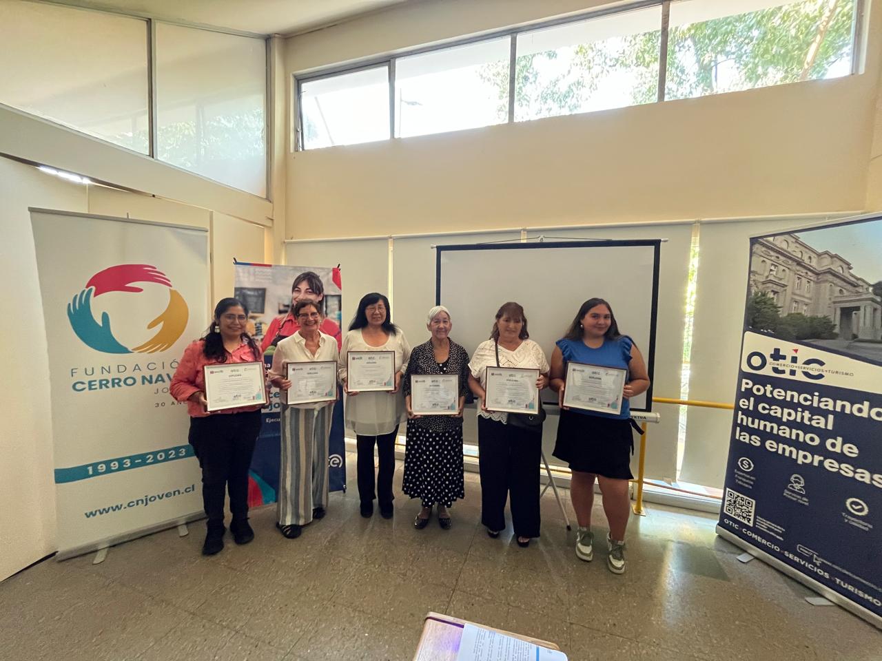 Las egresadas estuvieron acompañadas por el Sr. Matias Berndt, Gerente General de la empresa Dimerco Comercial S.A., Sra. Niniza Krstulovic,  Directora Ejecutiva Fundación Cerro Navia Joven, Waldo Salinas, Asesor Franquicia Tributaria y Sofía Carrasco, Jefa de Becas, del OTIC del Comercio, Sra. Claudia Álvarez, Representante Legal, las relatoras y coordinadora del curso  del OTEC Fundación de Capacitacion Cerro Navia Joven, y familiares y amigos de las egresadas.